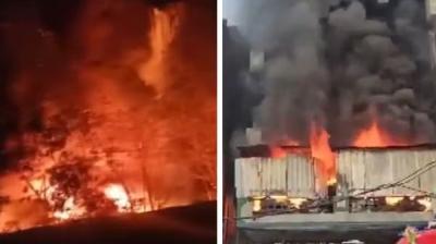 दिल्ली के नरेला में दिवाली पर दो फैक्ट्रियों में लगी आग, गुरुग्राम में गोदाम जला