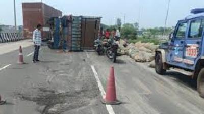 असम जा रहा आलू से भरा ट्रक पलटा: शिवपुरी में गाय को बचाने के चक्कर में बड़ा हादसा; दो महीने में 24 से ज्यादा मवेशियों की मौत