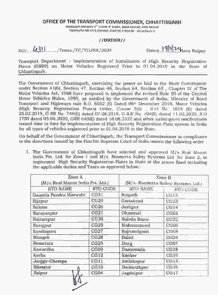रायपुर: छत्तीसगढ़ में अगर आपने अप्रैल 2019 से पहले कोई वाहन खरीदा है तो उस वाहन पर हाई सिक्योरिटी रजिस्ट्रेशन प्लेट (HSRP) लगाना अनिवार्य कर दिया गया है. इन वाहनों में HSRP (HSRP Number Plate Fine) लगाने की आखिरी तारीख 15 अप्रैल तय की गई थी. जिन वाहन चालकों ने ऑफिस टाइम तक HSRP लगवा लिया है उनके लिए तो ठीक है, लेकिन जिन लोगों ने नहीं लगवाया है उनके खिलाफ नए ट्रैफिक नियम के तहत सख्त कार्रवाई की जा सकती है. वहीं, जांच के दौरान पकड़े जाने पर आपको 500 से 10,000 रुपये तक का चालान और जुर्माना भरना पड़ सकता है. परिवहन विभाग ने पहले HSRP लगवाने के लिए दिशा-निर्देश जारी किए थे, इसकी तारीख खत्म होने के बाद अब लापरवाह वाहन चालकों पर सख्त कार्रवाई की जाएगी।