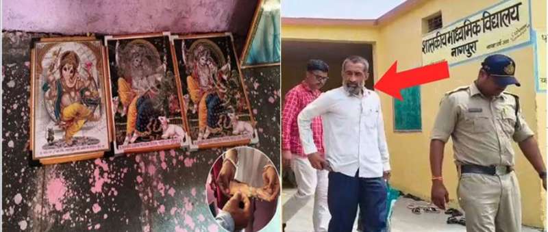 उज्जैन: मध्य प्रदेश के उज्जैन स्थित एक शासकीय विद्यालय से हैरान करने वाला मामला सामने आया है। शासकीय विद्यालय में पदस्थ मुस्लिम समाज के एक शिक्षक ने भगवान और भारत माता की तस्वीरें जला दी है। साथ ही राष्ट्रीय ध्वज भी जलाने की कोशिश की है। घटना की जानकारी लगते ही पुलिस ने मामले में प्रकरण दर्ज कर आरोपी शिक्षक को गिरफ्तार कर लिया है।