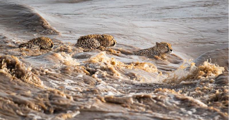 सफारी टूर ऑपरेटर और दक्षिण अफ्रीका के मेटा पॉपुलेशन इनिशिएटिव/चीता मेटा पॉपुलेशन प्रोजेक्ट के बोर्ड चेयरमैन केविन लियो-स्मिथ ने समझाया, 'बोत्सवाना के ओकावांगो डेल्टा में चीते उन बाढ़ के मैदानों को पार करते हैं जो मौसमी रूप से उनके क्षेत्रों में होते हैं, लेकिन ये तेजी से बहने वाले नहीं होते हैं। यही बात शेरों और तेंदुओं के लिए भी सच है जो पानी पार करने से बचने को प्राथमिकता देते हैं।' मोज़ाम्बिक में, चीते प्रमुख नदियों से दूर रहते हैं क्योंकि वहां शिकारी होते हैं।