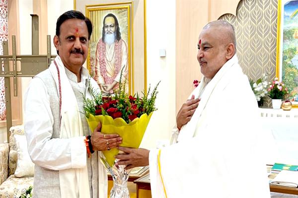 उप मुख्यमंत्री राजेन्द्र शुक्ल ने ब्रह्मचारी महर्षि गिरीश से की सौजन्य भेंट