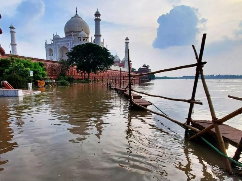 यमुना का जलस्तर बढ़ा: ताजमहल परिसर में टिकट विंडो से बाग तक बाढ़ का पानी भर गया