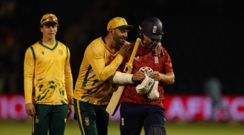 इंग्लैंड के लिए सॉल्ट और बटलर ने पहले विकेट के लिए 126 रन की साझेदारी कर टीम को मजबूत शुरुआत दिलाई। बटलर 30 गेंदों पर आठ चौकों और सात छक्कों की मदद से 83 रन बनाकर आउट हुए। इसके बाद सॉल्ट ने जैकब बेथेल के साथ मिलकर दूसरे विकेट के लिए 95 रनों की साझेदारी की। बेथेल 14 गेंदों पर 26 रन बनाकर पवेलियन लौटे। सॉल्ट फिर भी टिके रहे और शतक लगाने में कामयाब रहे। उनका साथ देने कप्तान हैरी ब्रूक उतरे और दोनों बल्लेबाजों ने तीसरे विकेट के लिए 83 रनों की अविजित साझेदारी कर डाली। सॉल्ट 60 गेंदों पर 15 चौकों और आठ छक्कों की मदद से नाबाद 141 और ब्रूक 21 गेंदों पर पांच चौकों और एक छक्के की मदद से 41 रन बनाकर नाबाद लौटे। लक्ष्य का पीछा करते हुए दक्षिण अफ्रीका के लिए कोई बल्लेबाज बड़ी पारी नहीं खेल सका और उसे 146 रन से करारी हार का सामना करना पड़ा।