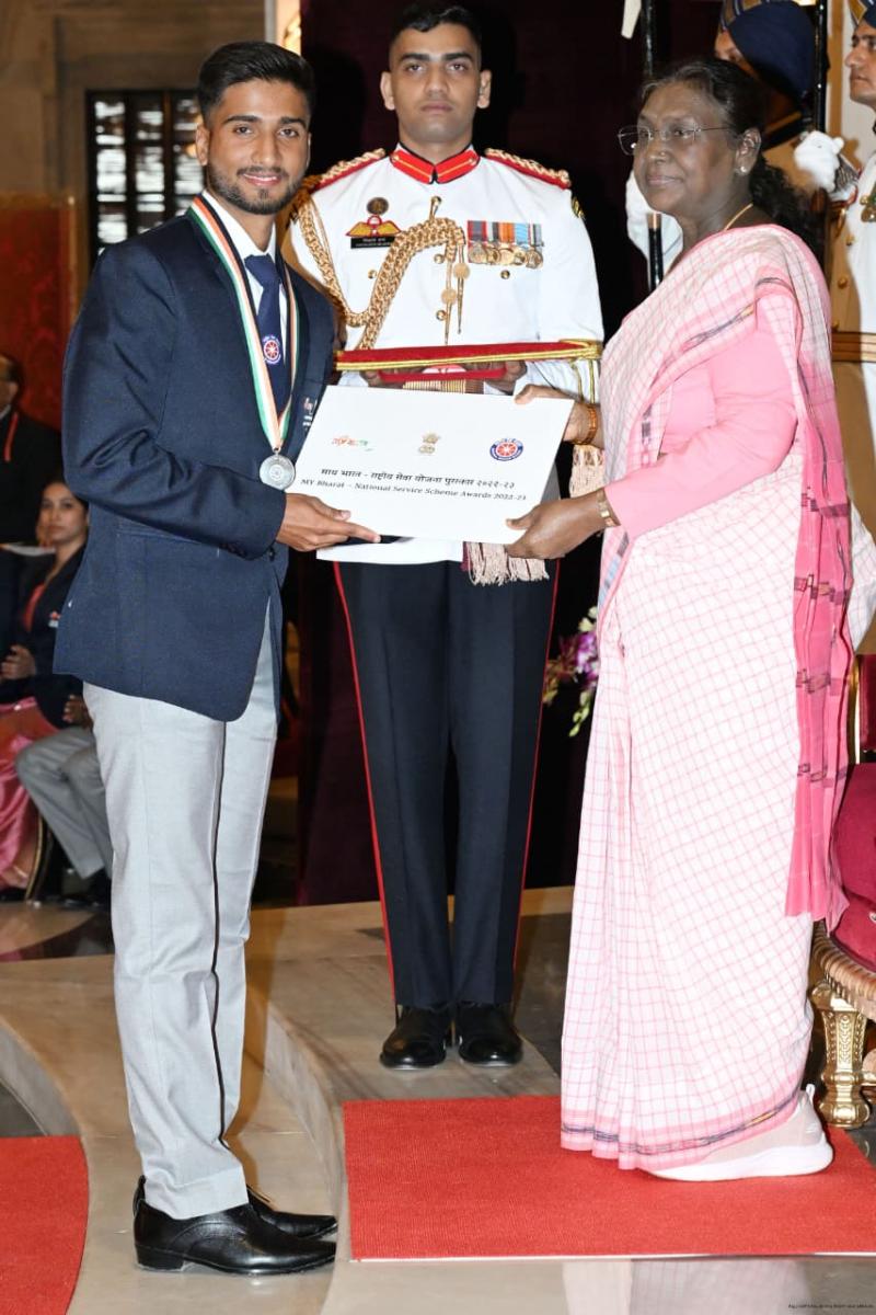 भोपाल : राष्ट्रपति द्रौपदी मुर्मु द्वारा उच्च शिक्षा उत्कृष्टता संस्थान भोपाल की राष्ट्रीय सेवा योजना (एनएसएस) इकाई की स्वयंसेवक सुआयुषी सिन्हा एवं बरकतुल्ला विश्वविद्यालय में अध्ययनरत छात्र सौमित दुबे को “राष्ट्रीय सेवा योजना का सर्वोच्च पुरस्कार” प्रदान किया। उच्च शिक्षा, तकनीकी शिक्षा एवं आयुष मंत्री इन्दर सिंह परमार ने बधाई एवं शुभकामनाएं दी हैं।