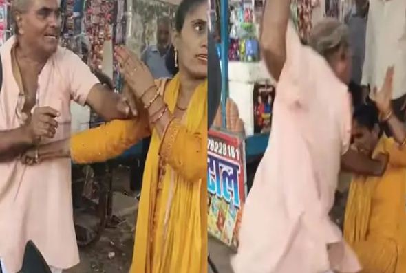 पुजारी ने सिगरेट की दुकान को लेकर युवती को सरेआम पीटा, लोग देखते रहे तमाशा
