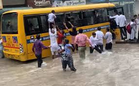 तेज बहाव में बही स्कूली बस, 30 बच्चों की सांसें अटकीं, ग्रामीणों ने बचाई मासूमों की जान