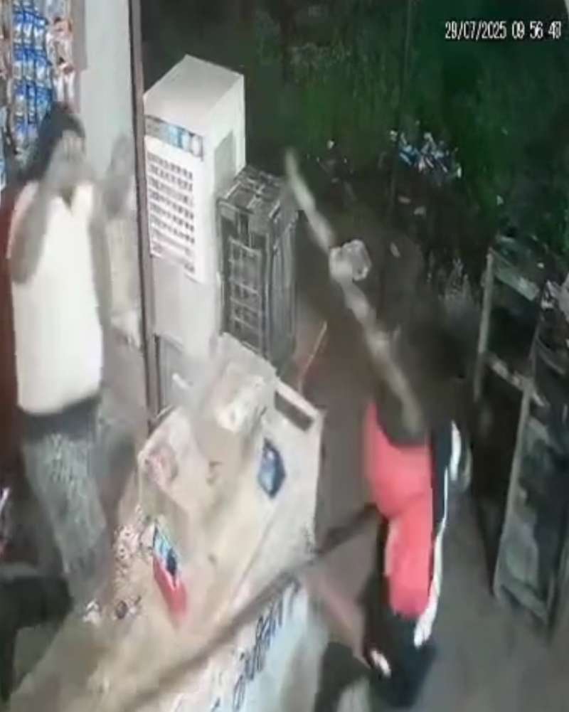 शिवपुरी जिले के भोंती कस्बे में 29 जुलाई की रात्रि 10 बजे दुकानदार पर 6 लोगों ने मिलकर लाठी कुल्हाड़ी से हमला कर दिया. इसके बाद शटर बंद कर दुकानदार ने अपनी जान बचाई. उसके बाद युवकों ने कट्टे से फायर भी किए. पूरी वारदात सीसीटीवी कैमरे में कैद हो गई है.