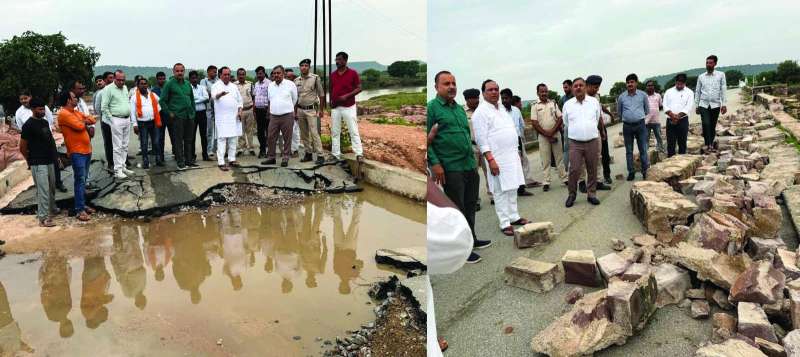 नरवर में क्षतिग्रस्त पुल का कलेक्टर ने किया निरीक्षण